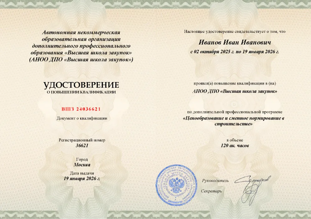 Повышение квалификации, 72 академических часа, 7 модулей: составление локальной сметы и расчет накладных расходов, работа со сметно-нормативными базами, виды строительства и расчет затрат, определение сметной стоимости материалов и техники, конъюнктурный анализ цен, особенности расчета стоимости монтажа оборудования и пусконаладочных работ, практические навыки составления смет в MS Excel методами БИМ и РМ. Онлайн-обучение в в Донецке с итоговой аттестацией.