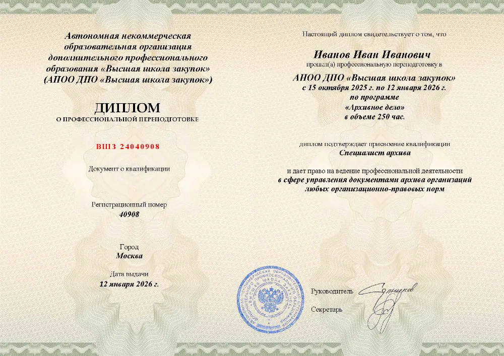 Программа профессиональной переподготовки (250 часов) для специалистов по архивному делу. Освойте правовые основы управления документами, технологии делопроизводства, оцифровку и организацию работы электронного архива с экспертизой ценности документов. Онлайн-обучение в в Донецке с итоговой аттестацией.