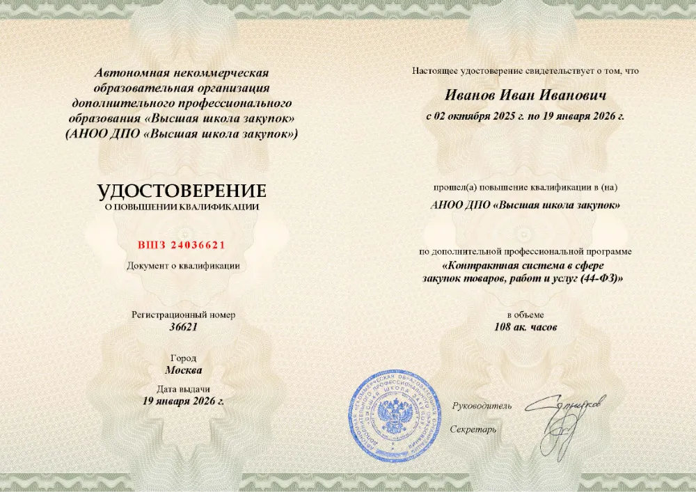 Повышение квалификации, 120 академических часов, 21 модуль: основы контрактной системы (44-ФЗ, 223-ФЗ), принципы и участники, способы и процедуры закупок, контроль, мониторинг и ответственность в сфере госзакупок. Онлайн-обучение в в Донецке с итоговой аттестацией.